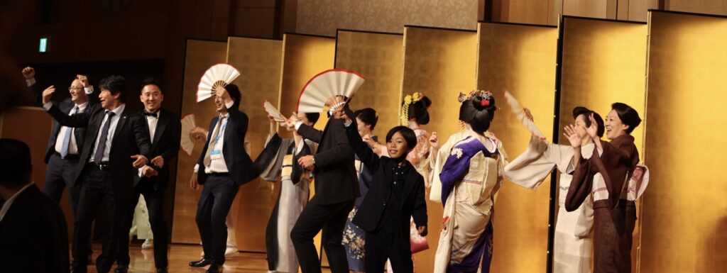司会の天川先生、中野先生の進行の下、山﨑長郎 理事長のご挨拶から開会された。日本臨床歯科学会 雑誌編集委員会 委員長 大河雅之先生から学会誌の説明と海外演者の先生への贈呈が行われ、芸者やDJによる余興、Dance timeもあり終始大盛り上がりであった。本多正明 副理事長の閉会のご挨拶で締めて頂き、参加者の深く思い出に残る濃密な2時間となった。