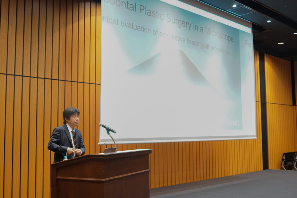 鈴木真名先生は、20年以上の長期経過症例を基に、結合組織移植の有効性を解説された。マイクロスコープの使用による術式精度と予後への寄与、リッジオーギュメンテーションや乳頭再建、ipac technic、歯肉を歯冠側に固定するボンディング法など多彩な症例が提示された。Masanaの分類を基にした治療戦略や、インプラント周囲における軟組織管理の難しさも取り上げられ、厚み・高さのバランス、角化粘膜や骨の環境整備の重要性が強調された。特に上皮の基底層の除去が治癒形態に大きく関わる点は印象的であり、根面被覆術の適応と成功の鍵を改めて示す内容であった。