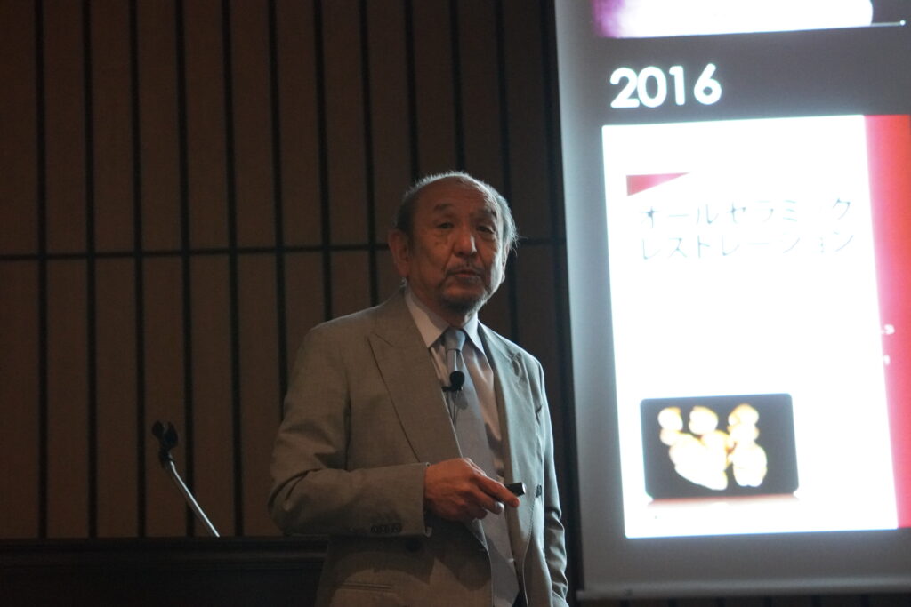 インプラントの過去から現在に至るまでの発展のお話し、過去に出版した本の中に掲載した症例に関して、現在の状態を事細かく話されていた。長期にわたる観察とトラブルに対してはリカバリーを行い、患者さんの口の中の歴史を感じた。しっかりした咬合と修復物形態を付与することによって長期的な予後が得られることを長期症例から示されていた。また歯周補綴から始まり、インプラント周囲炎、クラウン、ベニア、頭蓋顔面の成長と多岐にわたる様々な症例を提示し、聴講者にとって大変勉強になった講演であった。